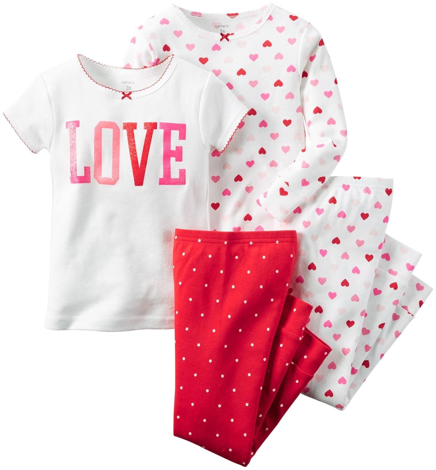 Carter’s Little Girls’ 4 Piece PJ Set (Toddler/Kid) – Valentines – 4T
